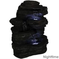 Sunnydaze Decor Sunnydaze 14″H Electric Polyresin Shale Falls Outdoor Water Fountain With LED Lights