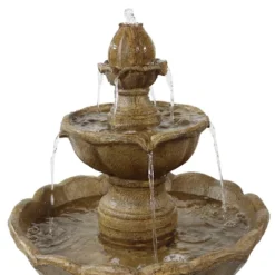 Sunnydaze Decor Sunnydaze 38″H Electric Resin 2-Tier Blooming Flower Outdoor Water Feature