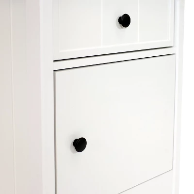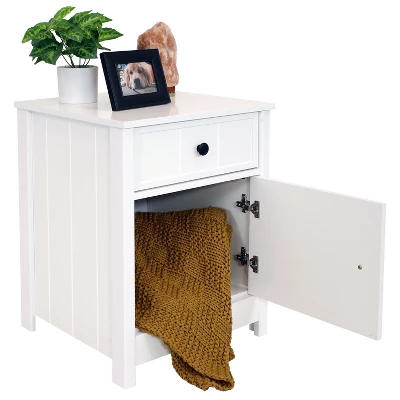 - Beadboard Side Table with Drawer and Cabinet – White