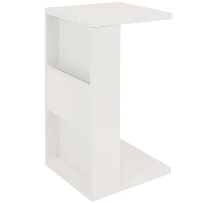 • BUILT-IN STORAGE: This white end table features an indent in the center to hold remotes, magazines, and other items to keep them close by when you need them.
