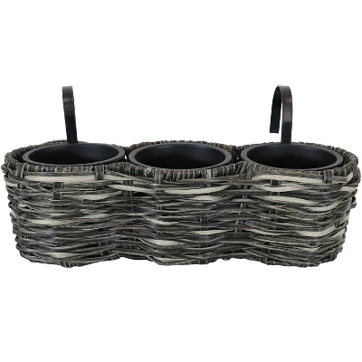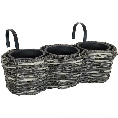 - Sunnydaze Round Polyrattan Over-The-Rail Tri-Planter