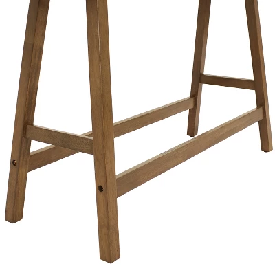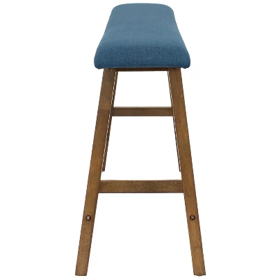 Add a modern touch to your dining space with this counter-height wood dining bench. Replace some chairs or simply add more seating in your kitchen or dining room easily by keeping the bench along a wall or near the table. This bench is designed to support up to 275 lbs. This backless, counter-height bench is made from durable rubberwood to last year after year. Rubberwood is a durable hardwood that requires little maintenance. Simply spot clean problem areas to refresh the appearance of the furniture and to return it to its original crisp, clean condition. The wood is finished with a weathered oak stain to add a mid-century modern accent to any indoor space. The comfy cushion is made with a polyurethane foam pad with a polyester cover for a polished appearance. The bench is designed for indoor use only and is equipped with pads on each foot to protect your floors.