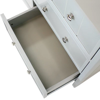 • LONG-LASTING STYLE: Made with durable and smooth MDF material with a gray painted finish and a UV-resistant coating, this six drawer chest features a classic look of real wood without the added maintenance. The silver handles are made with zinc alloy metal while the drawers slide easily on carbon steel sliders. Sure to complement any indoor setting, this dresser is built to last.