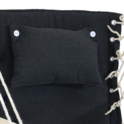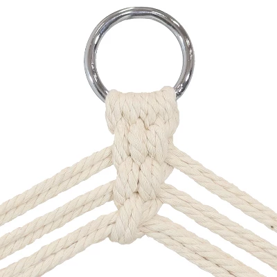 • GOOD QUALITY: The seat and hanging ropes on this hammock swing feature a polyester cover with a polyester fiber filling in a neutral shade of dark gray. It also features a sturdy birch hardwood spreader bar.