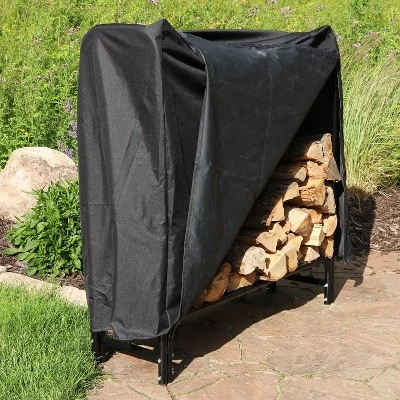 Sunnydaze Decor Sunnydaze Outdoor Heavy-Duty Steel Firewood Log Rack Holder And Weather-Resistant Polyester Log Rack Cover – Black
