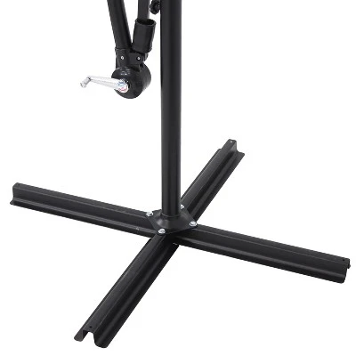 Enjoy shade during the day and gentle illumination in the evening with this outdoor, offset patio umbrella featuring solar LED lights on the inside of the umbrella canopy alongside the steel ribbing. Featuring a waterproof polyester umbrella canopy, this outdoor umbrella is designed to be strong enough to hold up against the elements year after year. The umbrella is held together by a durable steel base and pole that provide a sturdy frame for resistance to harsh wind. This outdoor patio accessory is easy to set up and adjust with the cantilever and crank. Please note, a heavy base is necessary to place on the cross base to keep this umbrella securely in place (a heavy base is not included and must be purchased separately). Available in many colors, get the patio umbrella that best fits your outdoor aesthetic. Easily set up, enjoy the shade during sunny days, and have good conversations with friends all night long!
